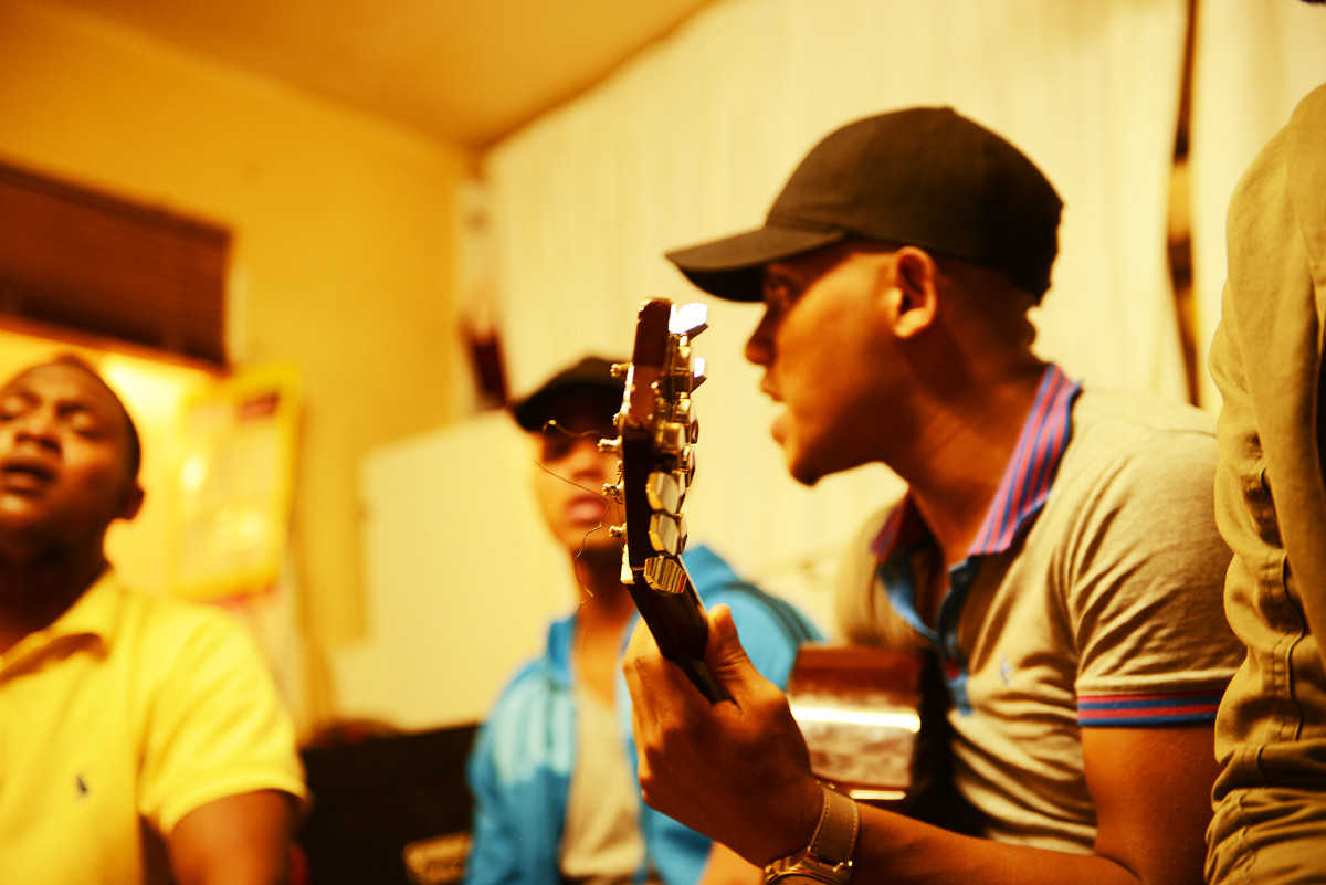 Once we’ve shared a meal with the members of the Gugulethu Gospel Stars and gotten to know them and the meanings of their songs a little better, we say our goodbyes and leave for Mitchells Plain. This is the home of the young men who perform as Beyside. The group was formed in 2010 when they were scouted to perform during the Soccer World Cup because of their ability to cover a smash hit of the Temptations. The group soon serenades us with a variety of Dutch, Afrikaans, English, Spanish and Cape Malay hymns. After the performance we sit down for a spread of snacks and discuss the history and stories of Mitchells Plain and the District Six community.