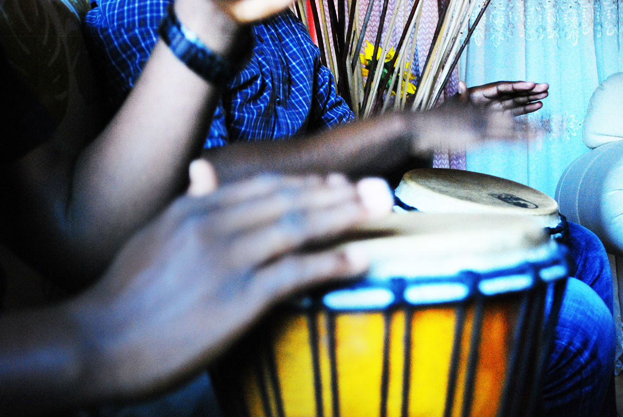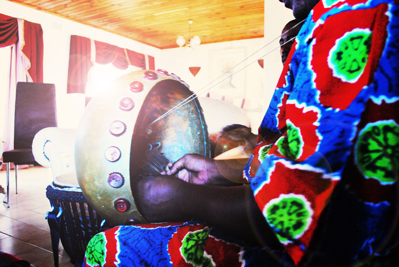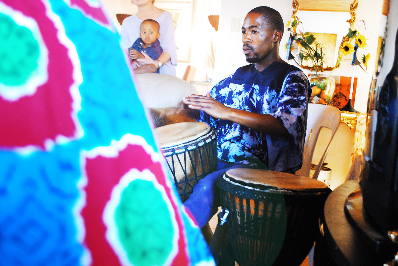 What locals refer to, as the Beverley Hills of Gugulethu is the setting for what will be an unforgettable and easy-going afternoon of learning about various African musical instruments and traditions. Our instructors for the next hour are Henry and his associate Thabo. Henry, a down-to-earth man with an exceptional knowledge of Pan African musical traditions, has an insatiable appetite for melodies from all across the continent. His knowledge is second only to his passion for music, a love he expresses through a number of instruments, amongst them those that he’ll teach us during our visit – the Djembe (drum) of West Africa, Kudu horns of Uganda, reed pipes of Venda and Mbira, the handheld harp of Southern Africa. There’s absolutely no time to be wasted on warm ups. We get off to a cracker of a start with a crash course on how to play Djembe drums, and from the first to the last beat; there will be no moment of pause.