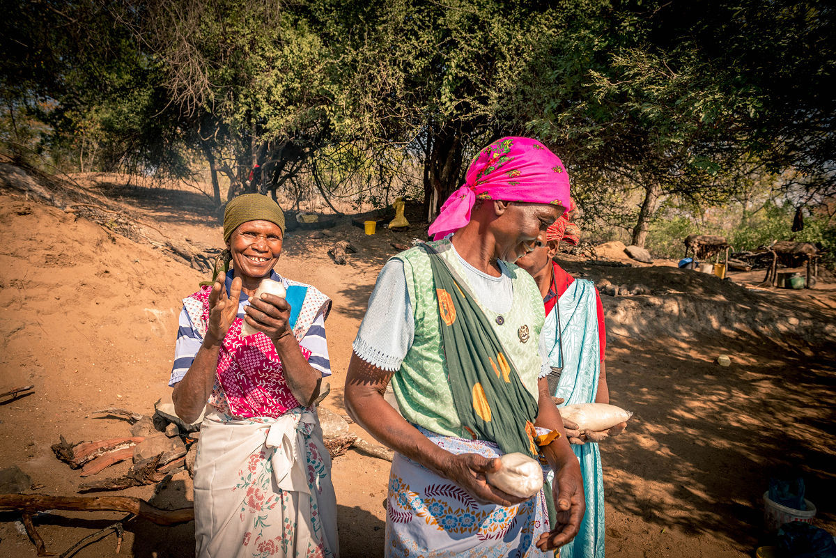 After our relaxing hot springs experience we leave for Soutini Village to visit the Salt Pans. Before we enter the Salt Pans we are required to leave an offering for the ancestor at the base of an ancient Leadwood tree. Once our respects have been paid we are welcomed into the sacred space where salt has been collected in a tradition spanning centuries. Many of the women here are from the surrounding villages and during winter they spend two weeks at the river collecting salt. During these 2 weeks they are accompanied other female salt collectors and their loyal hounds.