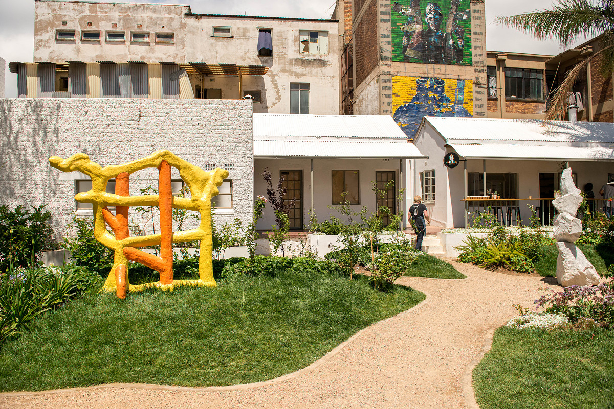 The tour kicks off in the Maboneng precinct outside the newly refurbished Cosmopolitan Hotel, a once-renowned gentlemen’s club. Today the building houses a restaurant, a bar, gallery and retail spaces. The courtyard is why we are here. This is the site of a budding green space punctuated by a handful of sculptures. The garden offers a moment of contemplative pause in a space often-times defined by a feverish mechanical energy. Once our guide has introduced us to the concept of urban farming, the history of the Cosmopolitan and outlined the itinerary for the day, we head out to Observatory, a nearby suburb.