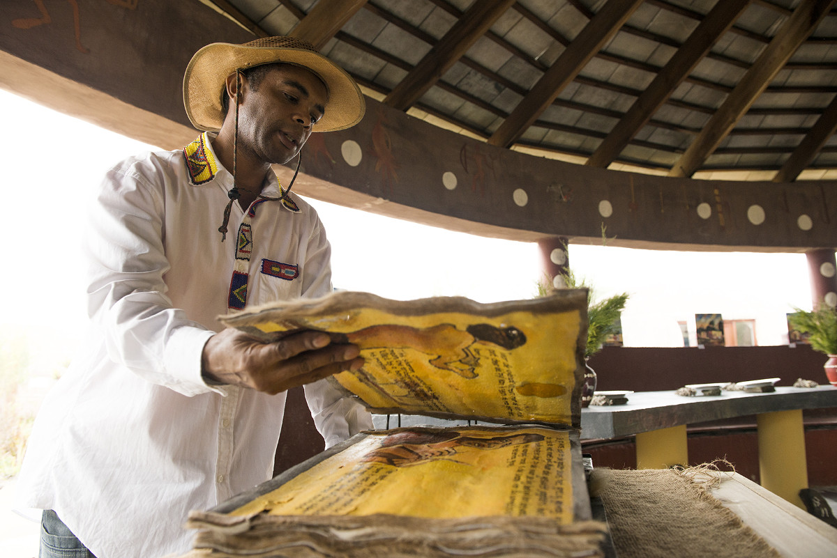 But before we can sit down to enjoy a meal together, Stanley introduces us to the ways and customs of the Khoisan. He begins by speaking to us about the medicinal plants, such as Wild Dagga, Buchu and Mphepho, which the Khoisan people have used for countless years. Afterwards we receive an invaluable lesson on rock paintings and how to interpret these historic artworks. Stanley provides a brief analysis of the various elements one might see depicted in Khoisan rock paintings. A handprint for instance often reflects healing while Elands represent rain. Fish, he suggests, are related to healing ceremonies that are conducted by a healer or Shaman. The healer would enter a trance and channel the ancestors as counsel for the living.